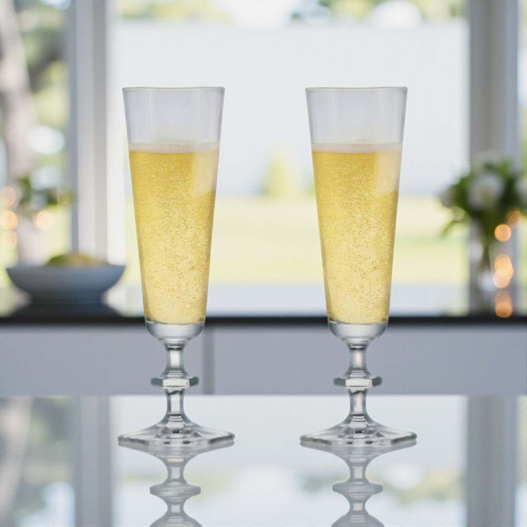 As Taças Elegance são verdadeiras joias lapidadas individualmente, detalhe por detalhe, por grandes artesãos e suas técnicas milenares. Com design moderno, possuem linhas retas com a borda mais aberta que proporciona também a preparação de alguns drinks ex: Bellini, Mimosa, Rossini, etc.